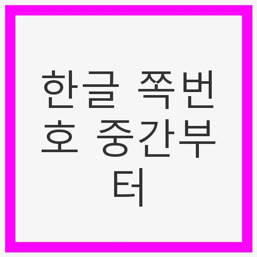 한글은 많은 이들이 사랑하는 문서 작성 프로그램입니다. 다양한 기능을 통해 문서 작업을 보다 쉽고 효율적으로 만들어 주는데, 그 중에서도 쪽번호 기능은 꽤 유용합니다. 쪽번호는 문서의 구조를 명확히 하고, 인쇄나 발표 시에 필요한 정보 전달을 용이하게 해줍니다. 그러나 많은 사용자들이 쪽번호를 매기는 과정에서 어려움을 겪는 경우가 많습니다. 특히 쪽번호를 중간부터 시작하려고 할 때나 쪽번호가 보이지 않는 문제는 흔히 발생하는 상황입니다. 오늘은 이러한 문제를 해결하고, 한글 쪽번호를 중간부터 매기는 방법에 대해 알아보겠습니다.